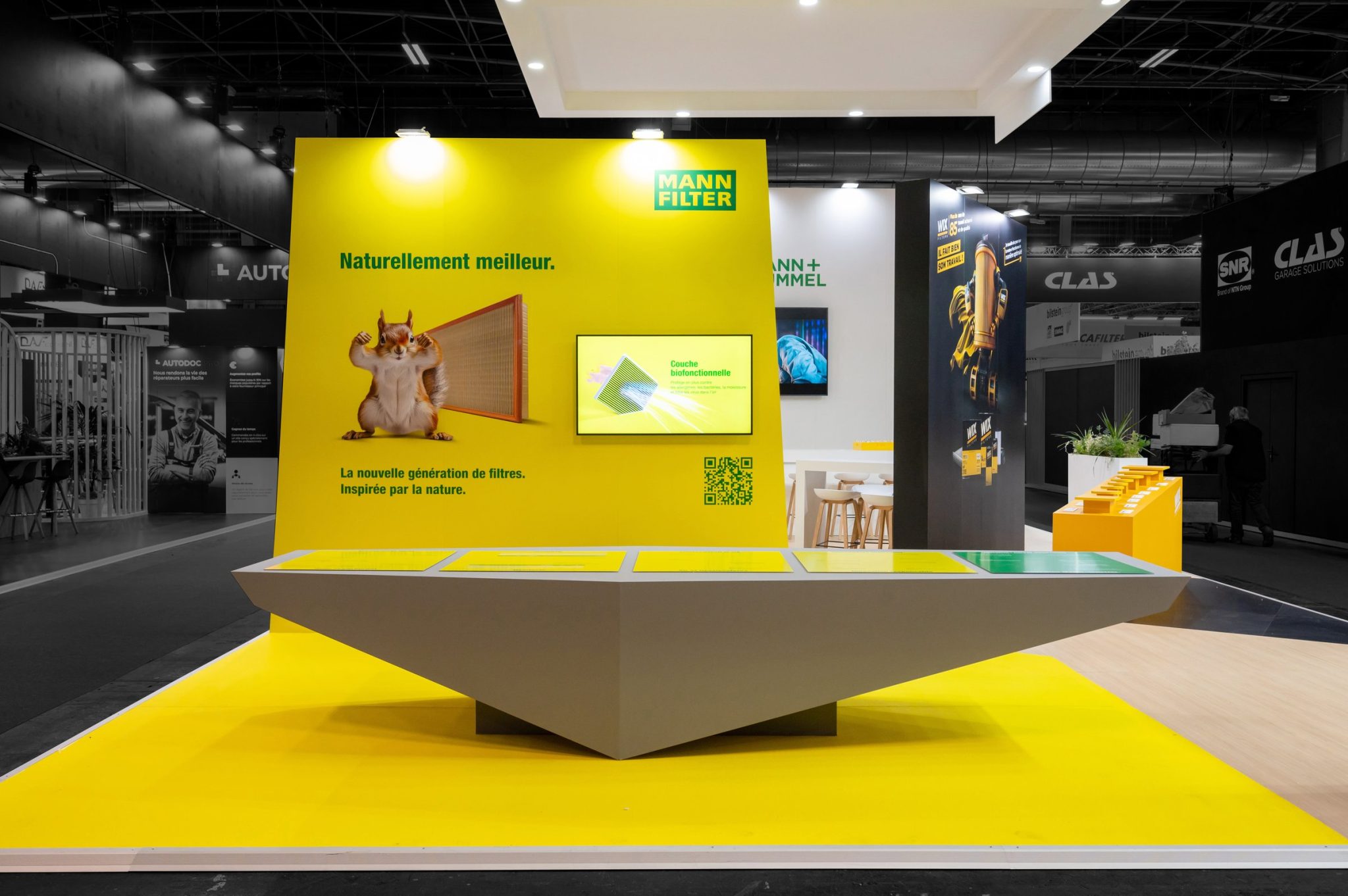 For the Equip Auto trade show, R2 Stand & Event designed and built a custom stand for Mann+Hummel, a global player in filtration, marking a first collaboration focused on visibility, elegance, and customer experience.