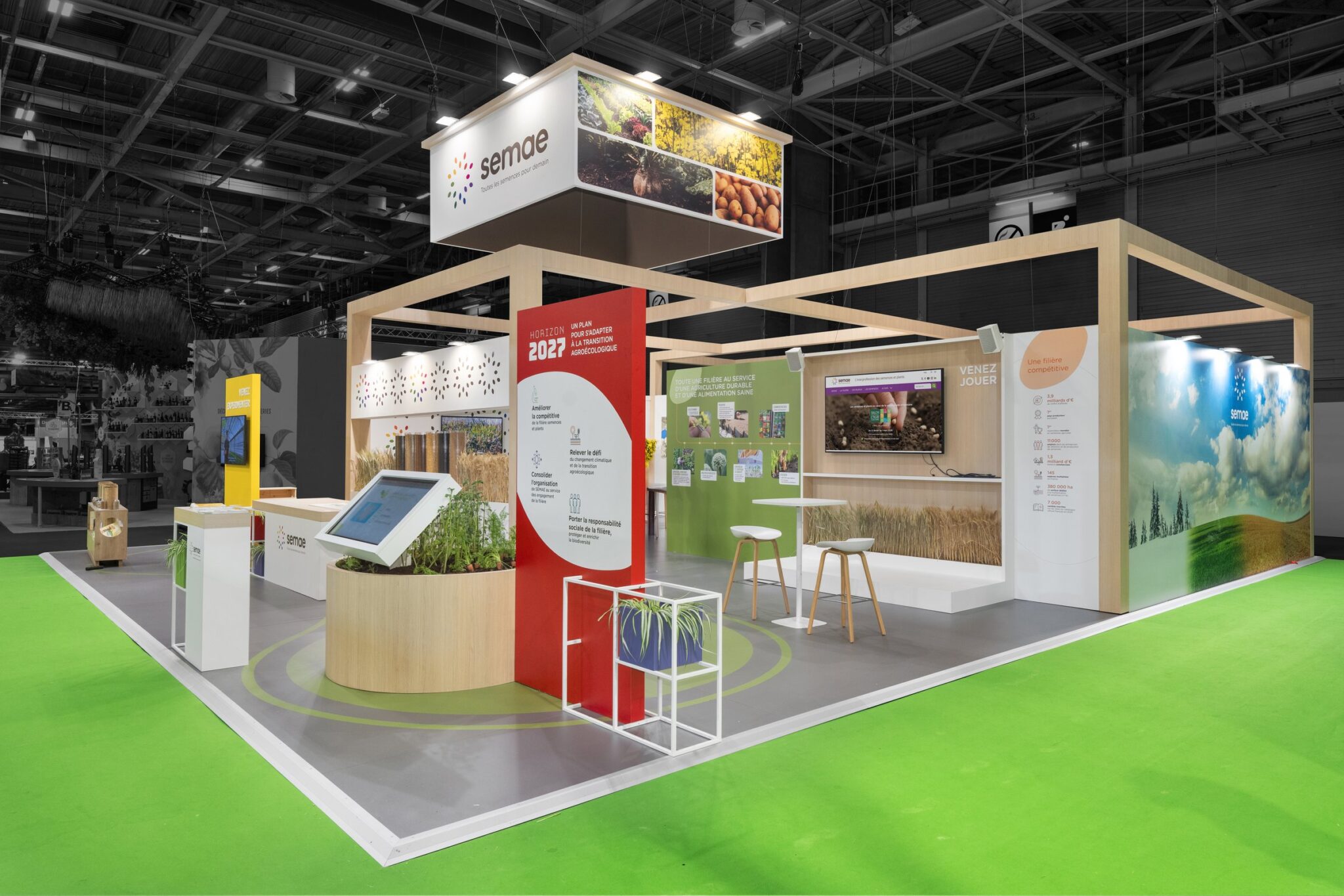 R2 Stand & Event is delighted to be designing the exhibition space for SEMAE, the inter-professional organisation for seeds and plants, a strategically located booth covering 178 m² at the heart of the SIA. Our mission: to create a dynamic platform that showcases seeds and plants and brings together all sectors of the industry.