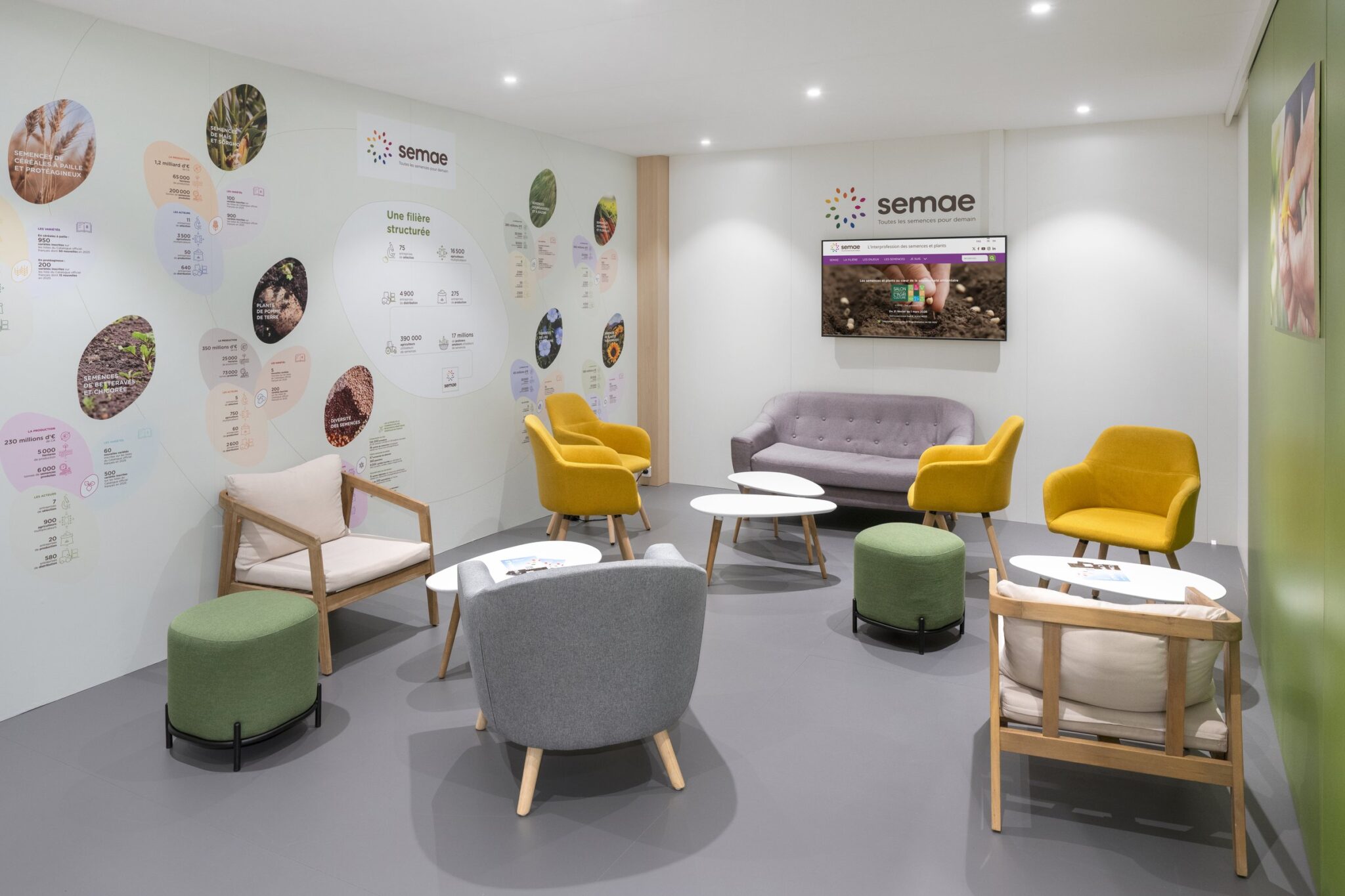 Warm atmosphere: the atmosphere is designed to be welcoming and friendly. The subtle integration of crops and plants punctuates the discovery trail, creating a setting that embodies SEMAE’s activities and encourages interaction.