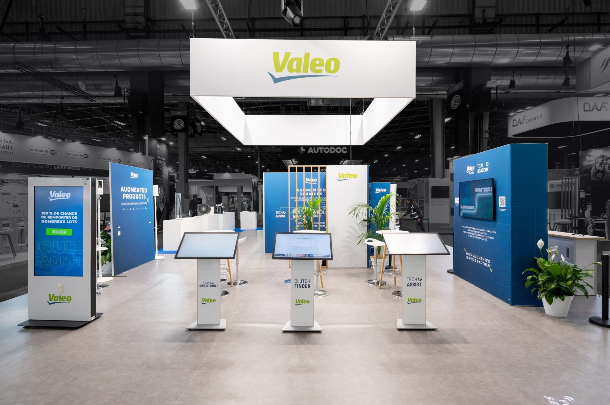 Custom-made elements, such as integrated product displays, showcase Valeo’s innovations.