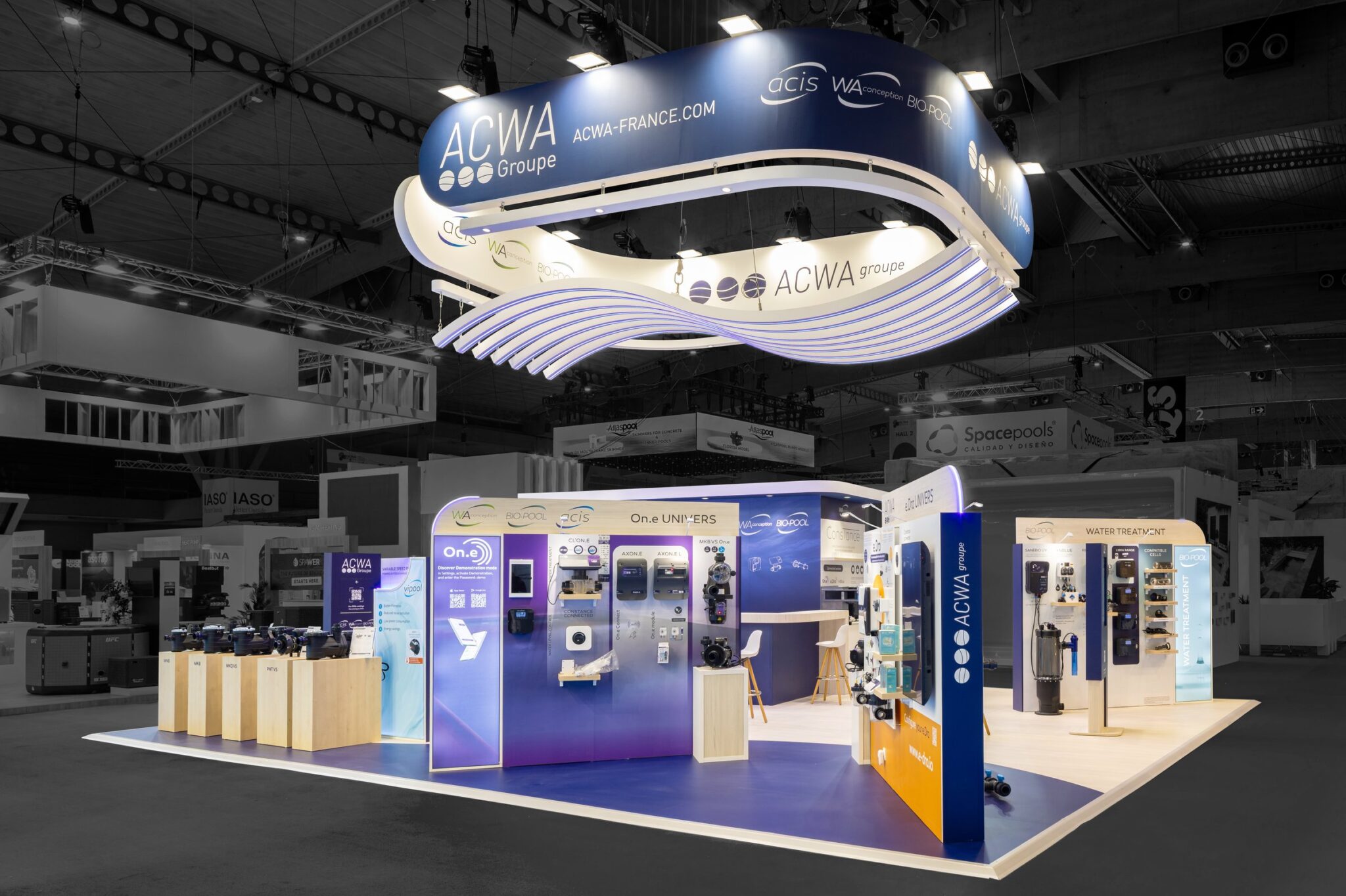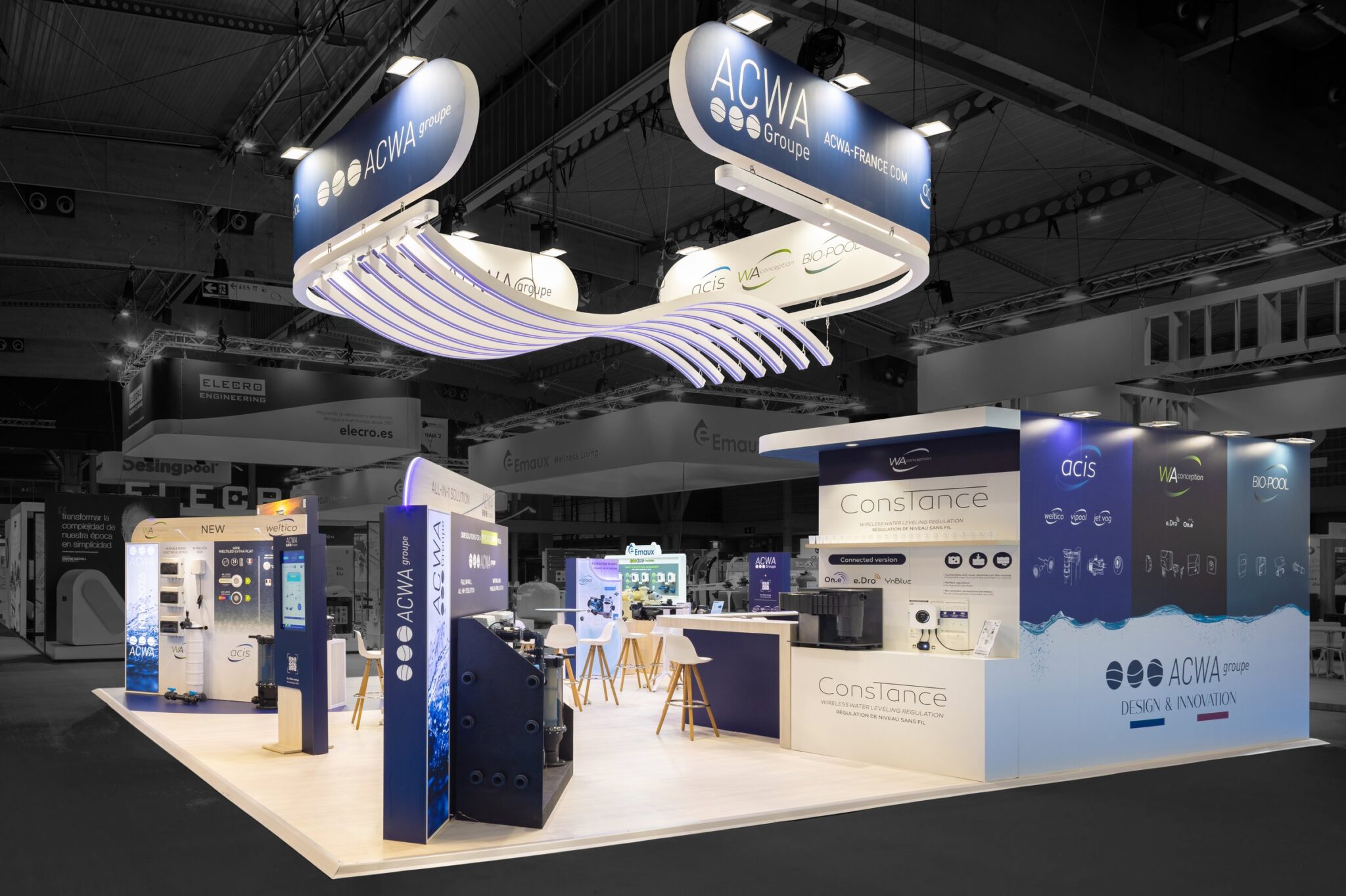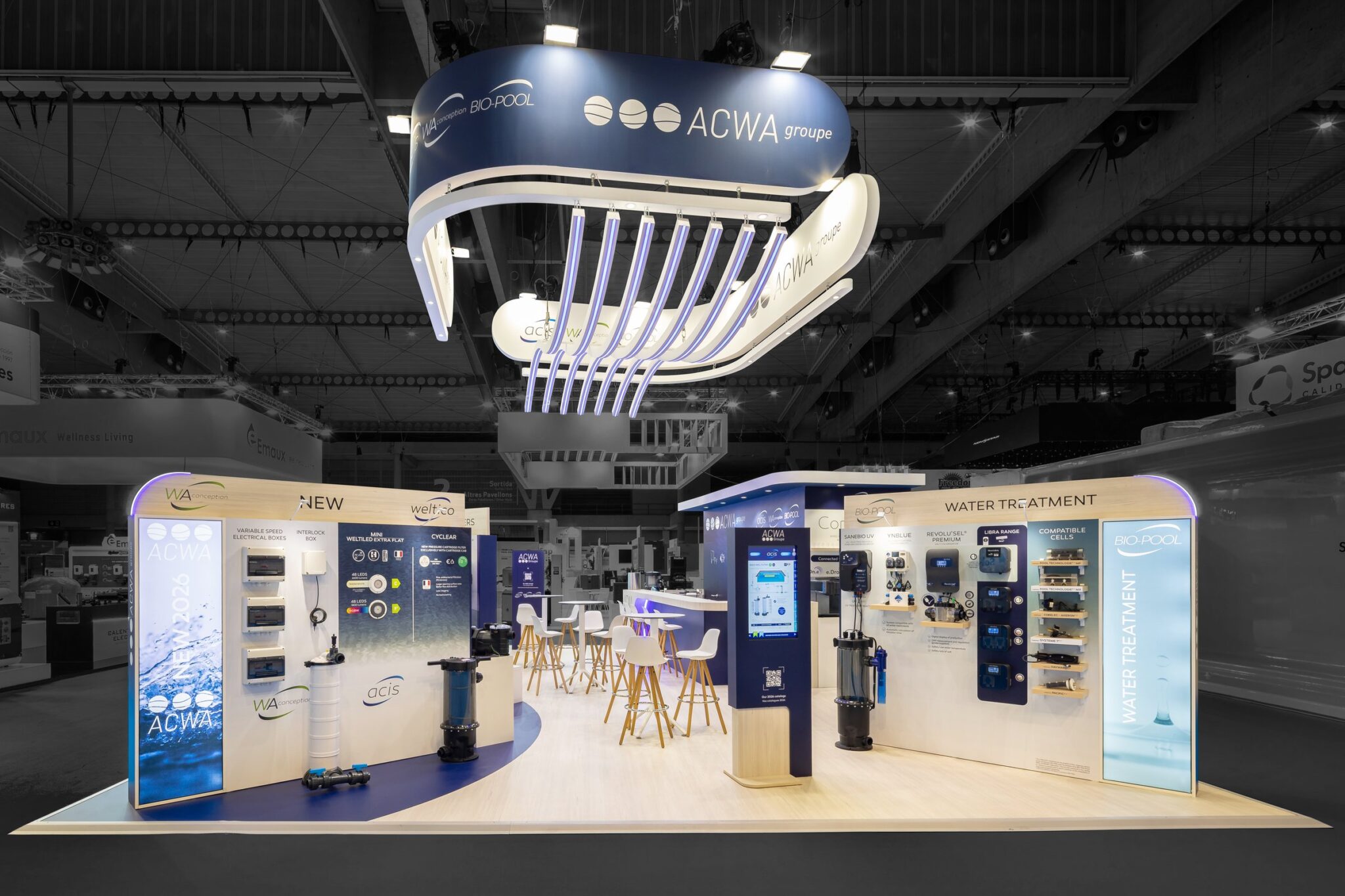 R2 Stand & Event réalise pour ACWA un stand sur-mesure de 80 m² au salon Piscina Barcelona, pensé pour allier visibilité maximale et expérience immersive.